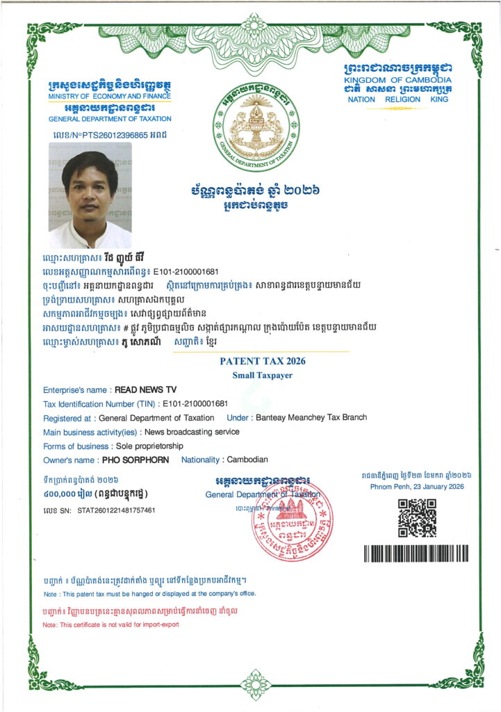 ឯកសារឯកភាពនិងអនុញ្ញាតិ ពីប្រតិភូរាជរដ្ឋាភិបាល អគ្គនាយកដ្ឋានព័ត៌មាននិងសោតទស្សន៍
